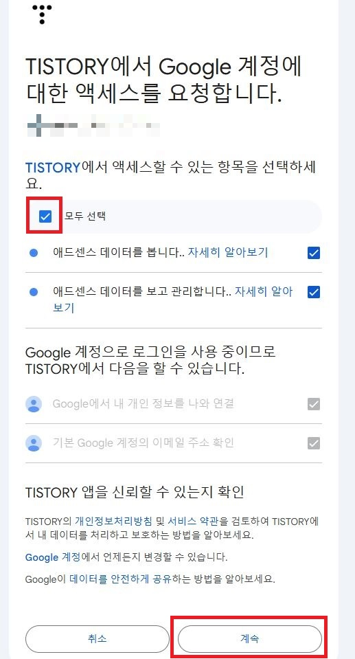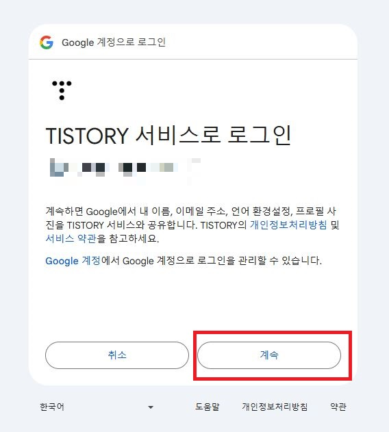 티스토리 서비스로 로그인 [계속]해주고