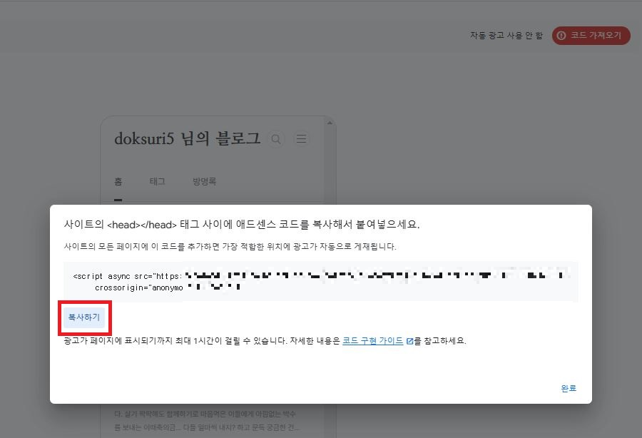 [복사하기]를 하고 [완료]를 눌러 창을 닫는다.