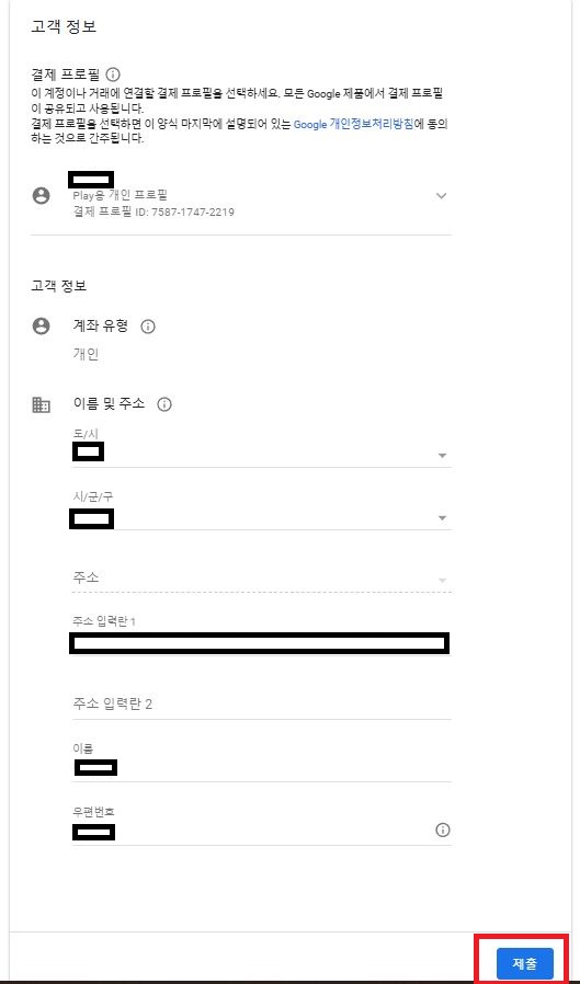 본인 이름을 확인하고 주소 입력 후 [제출]을 클릭한다.