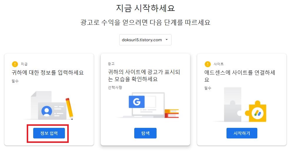 로그인을 하면 첫 화면에 세 가지 단계가 나타난다. 순서대로 따라 하면 끝이다.