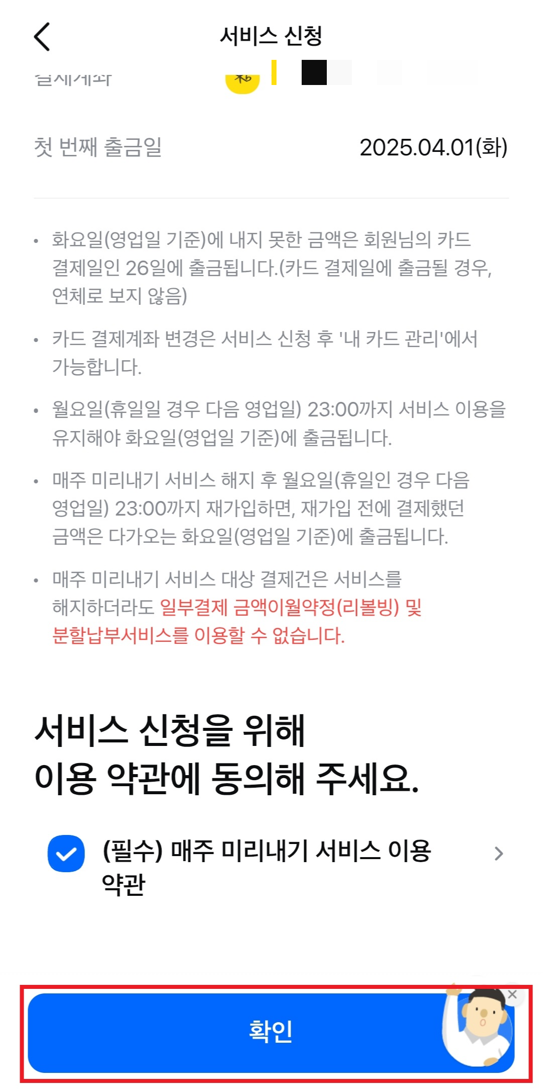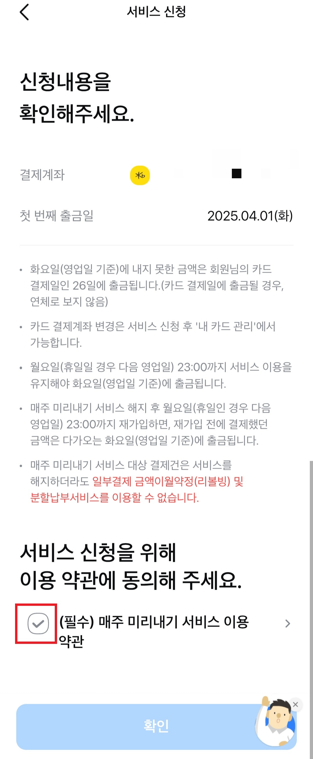 하단의 [매주 미리내기 서비스 신청]을 클릭한다.