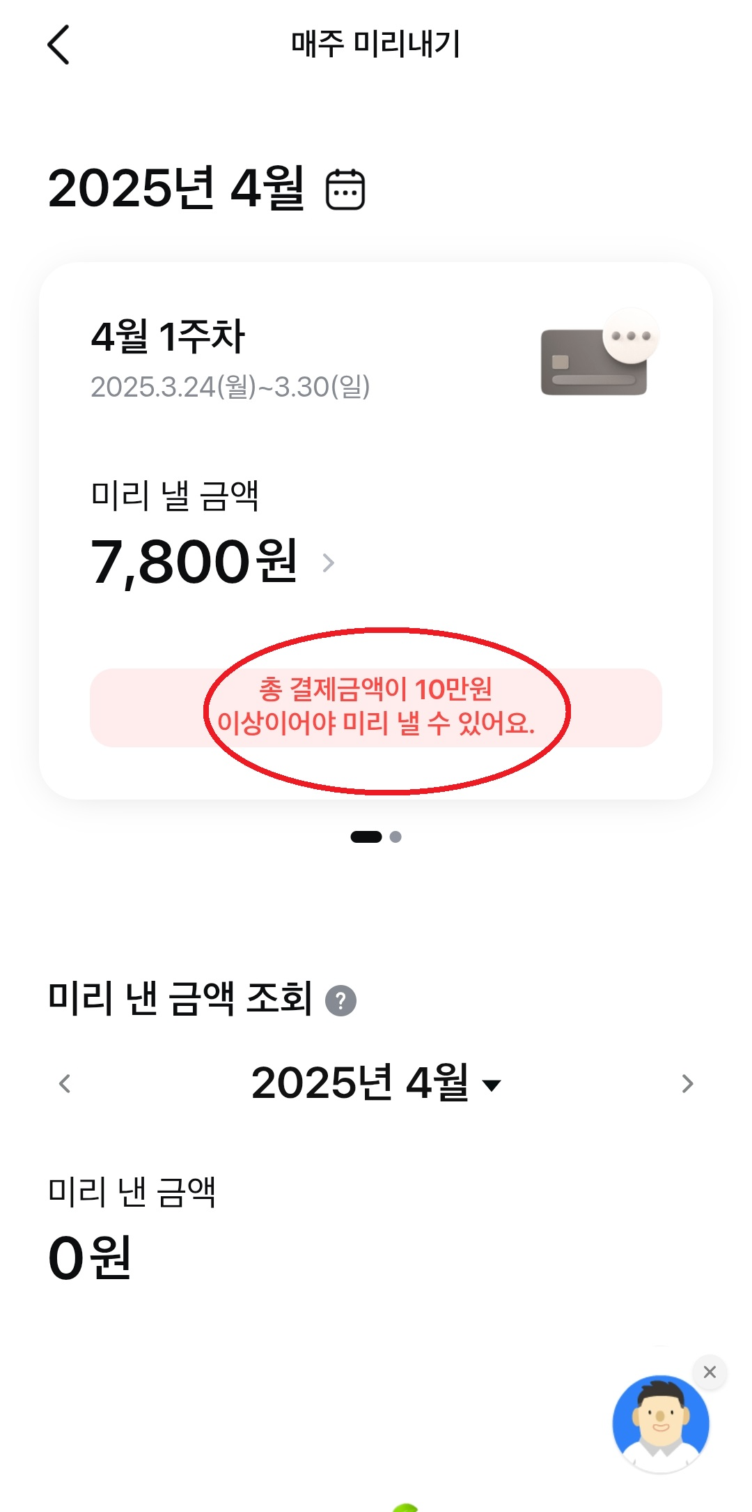 (매주내기에서 자동결제를 못해도 매달 결제일에 카드대금을 내면 연체가 되지 않는다.)