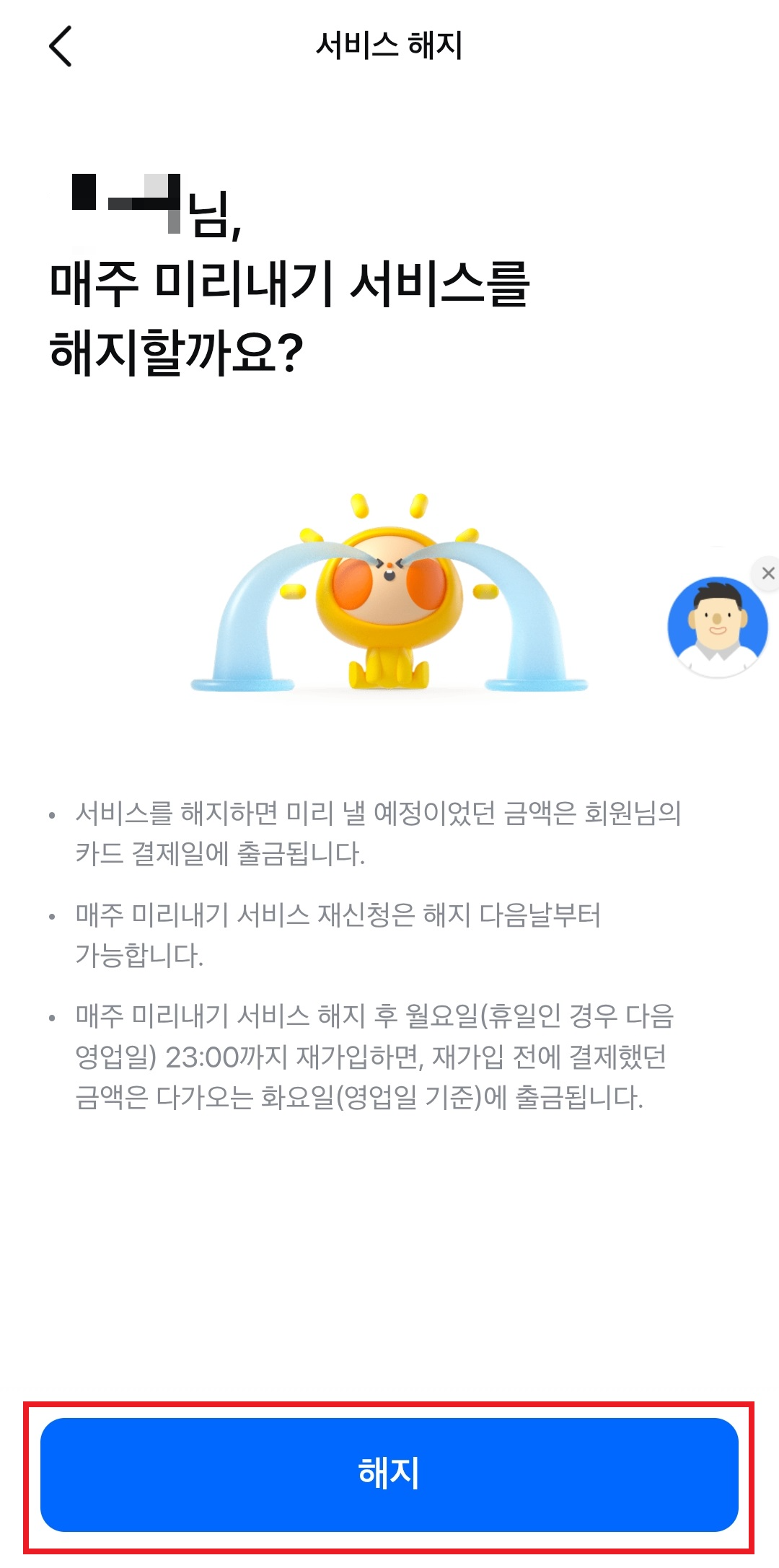 [해지]를 누른다.