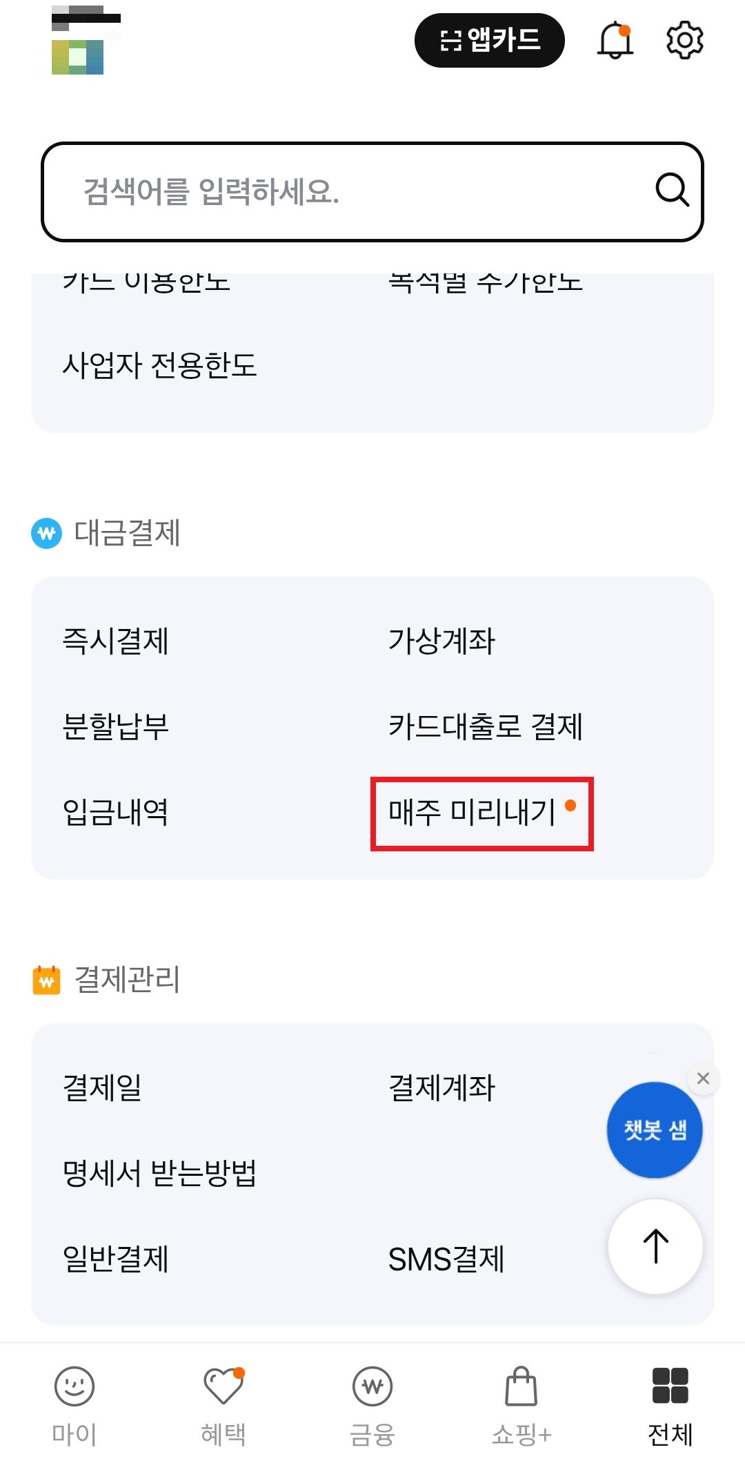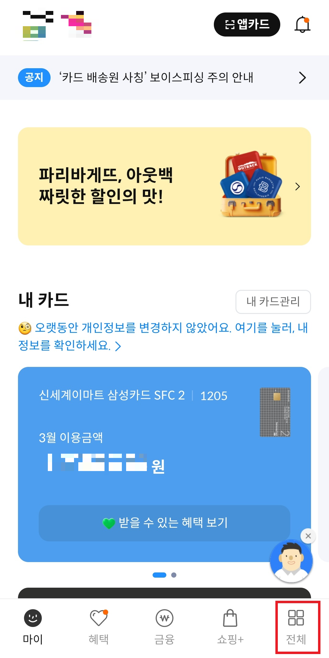 일단 삼성카드 앱으로 들어간다.