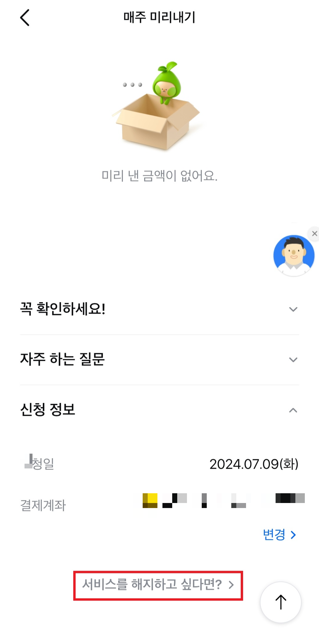 [서비스를 해지하고 싶다면?>]을 누른다.