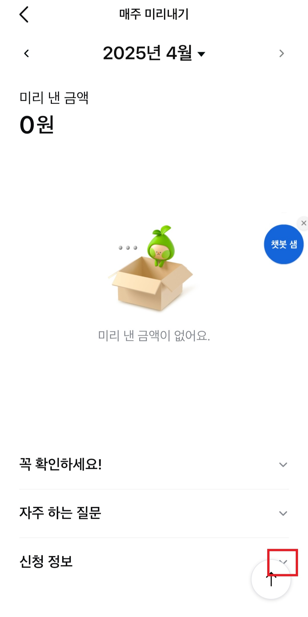 신청정보 옆 화살표를 눌러준다.