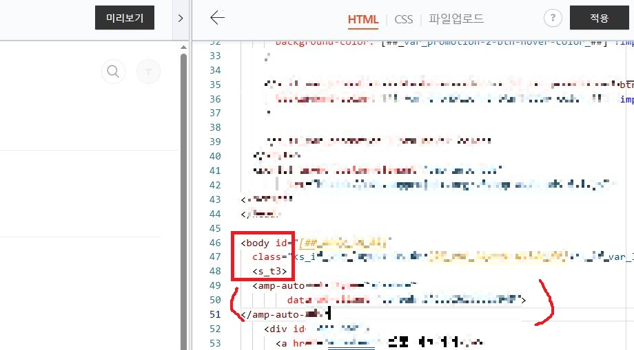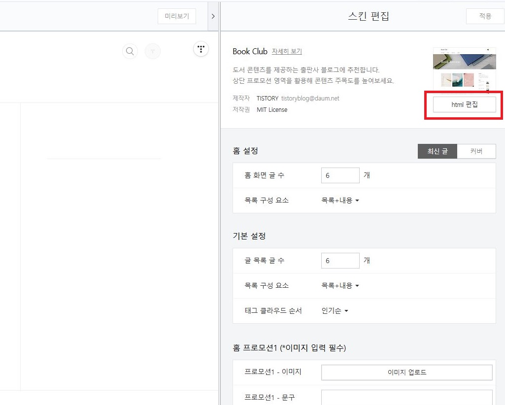 페이지 우측 [html편집] 클릭.