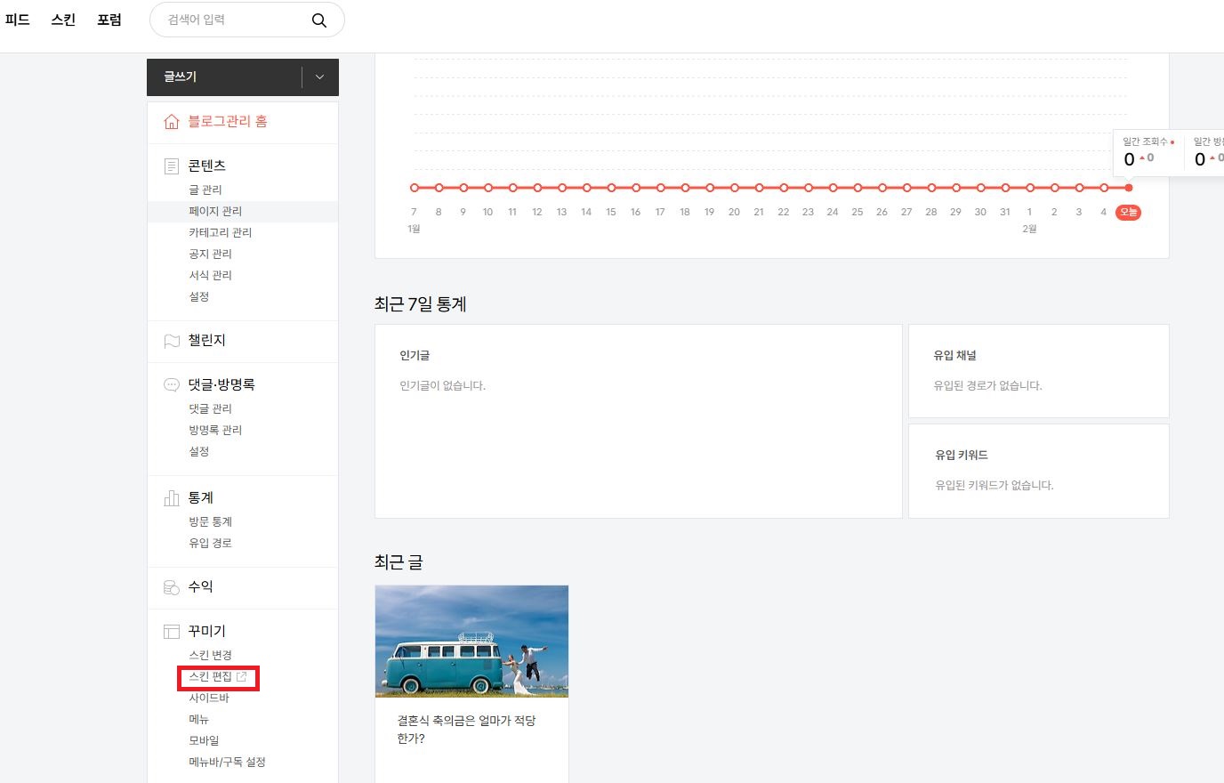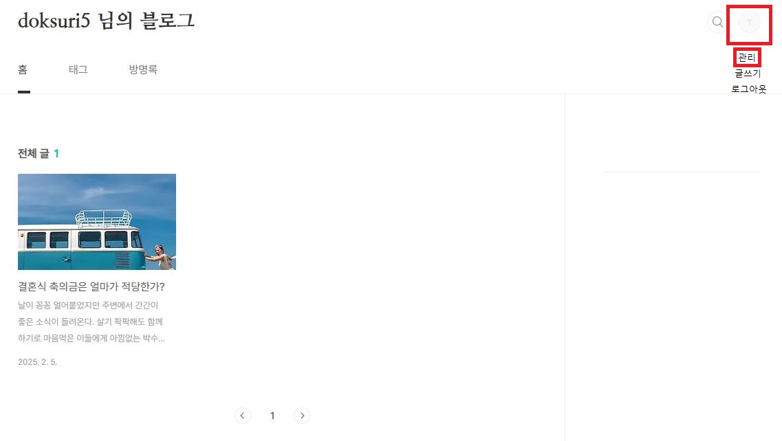 그리고 블로그 관리 화면으로 돌아가서