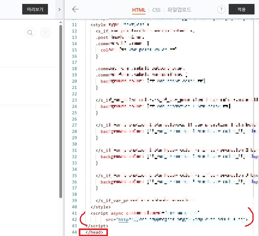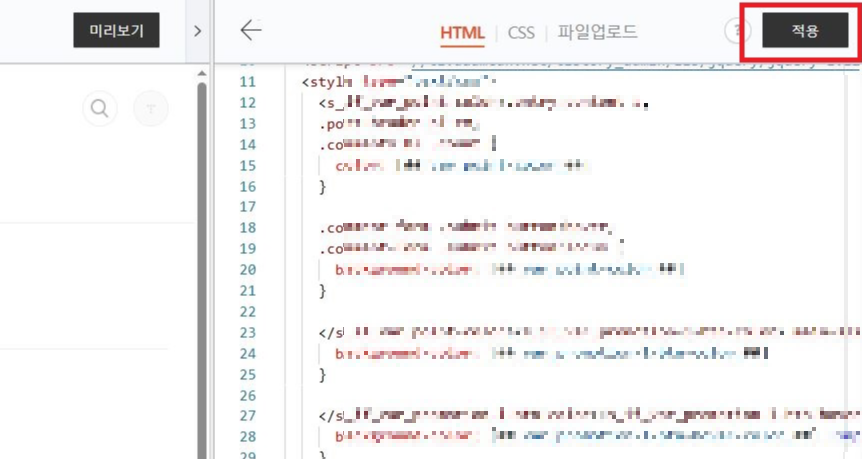 코드를 모두 붙여 넣었다면 우측 상단 [적용]을 눌러준다.