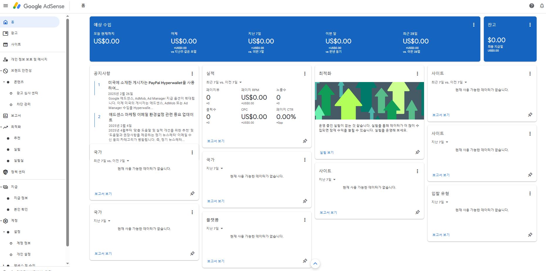 설레는 마음으로 애드센스 사이트에 로그인을 해본다.