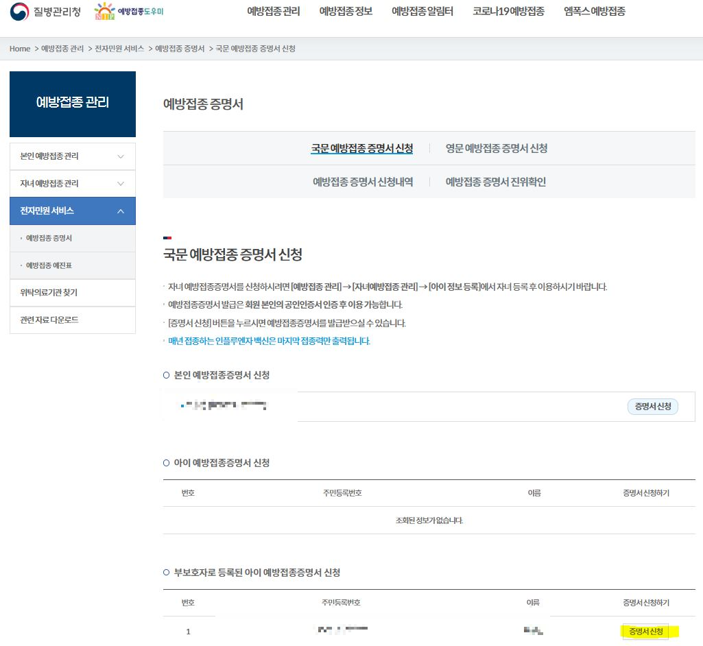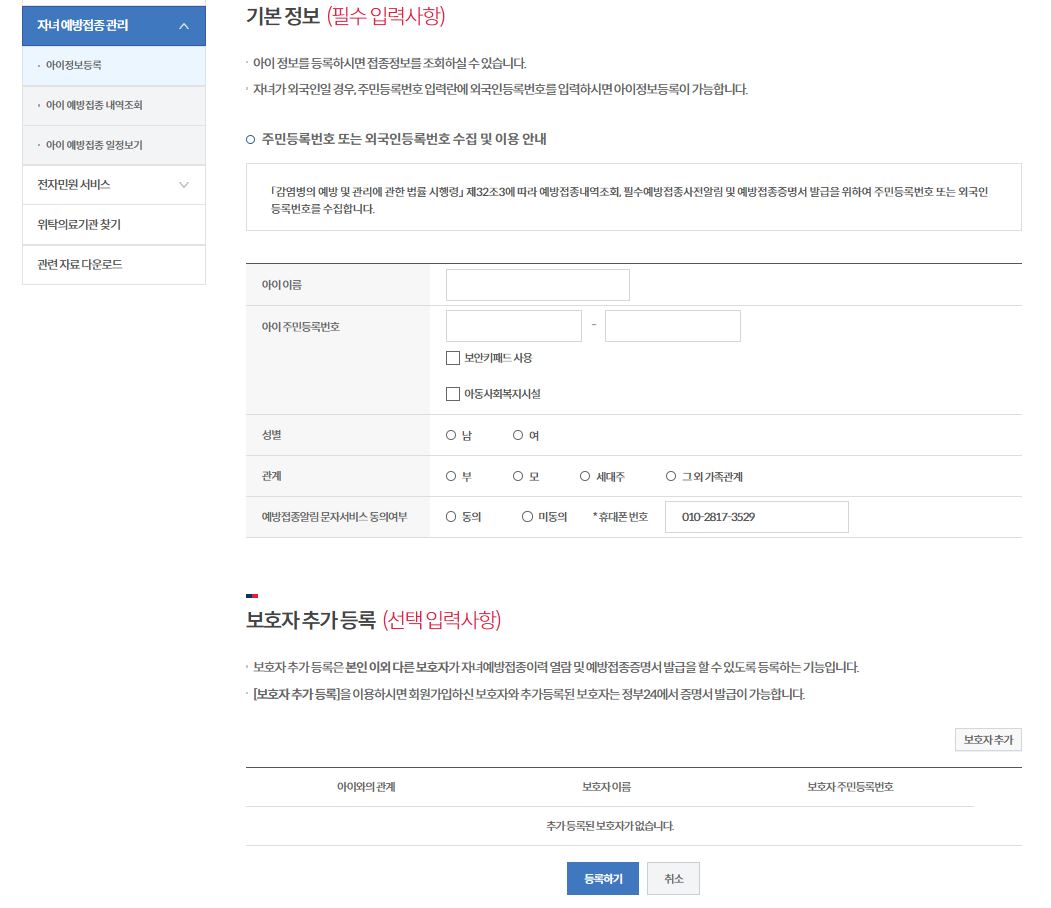 보호자 등록을 해야하는 경우 예방접종도우미를 이용하는 게 좋다.