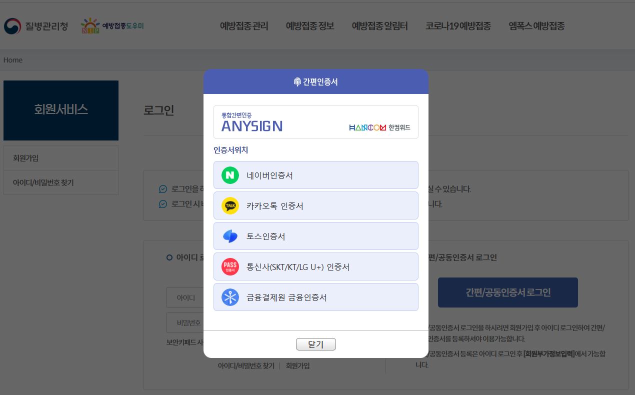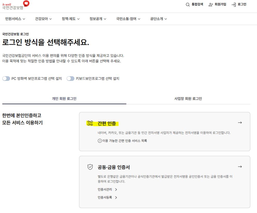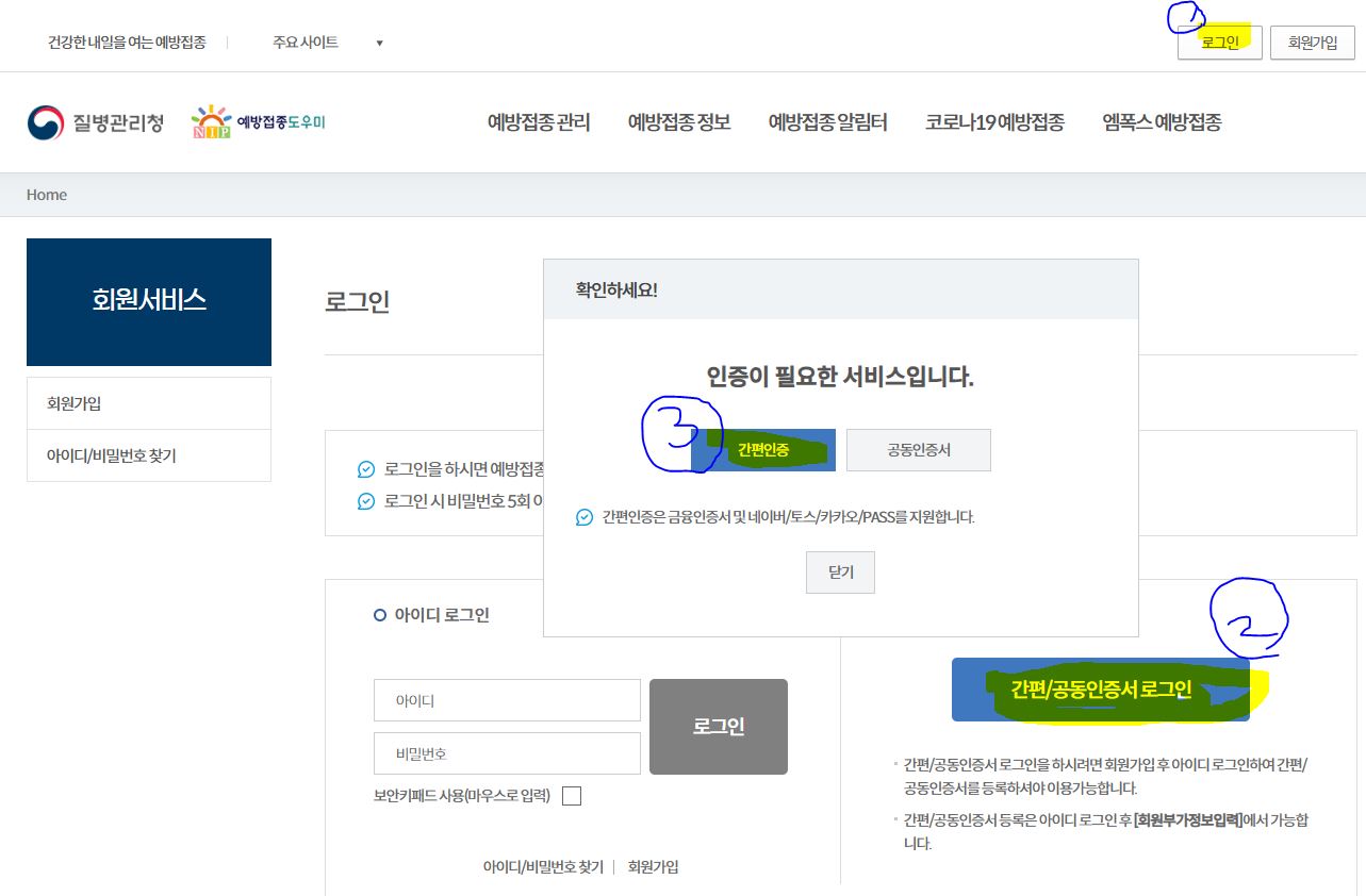 따로 아이디 만들 필요 없이 간편 인증이나 공동인증서 로그인을 하면 된다.