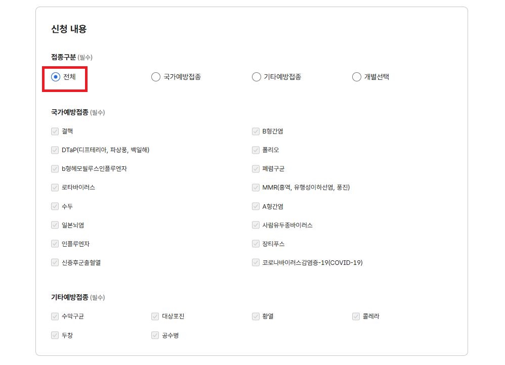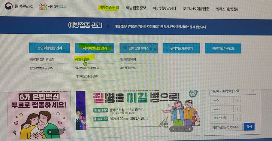 예방접종관리 > 자녀예방접종관리 > 아이정보등록
