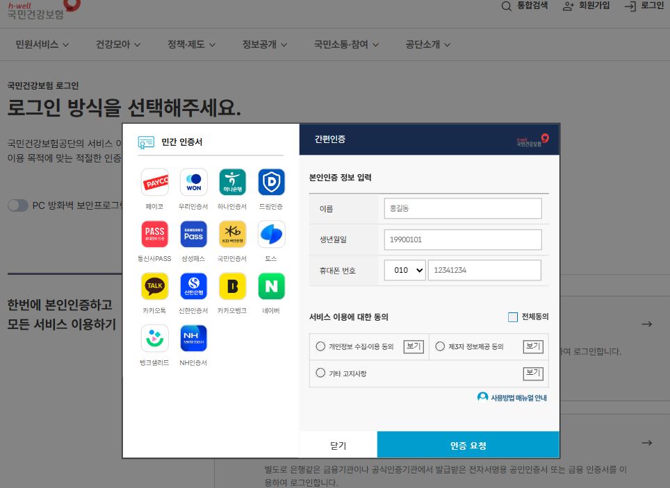 다양한 인증방법이 있고 핸드폰으로 인증요청하고 동의하고 인증완료!
