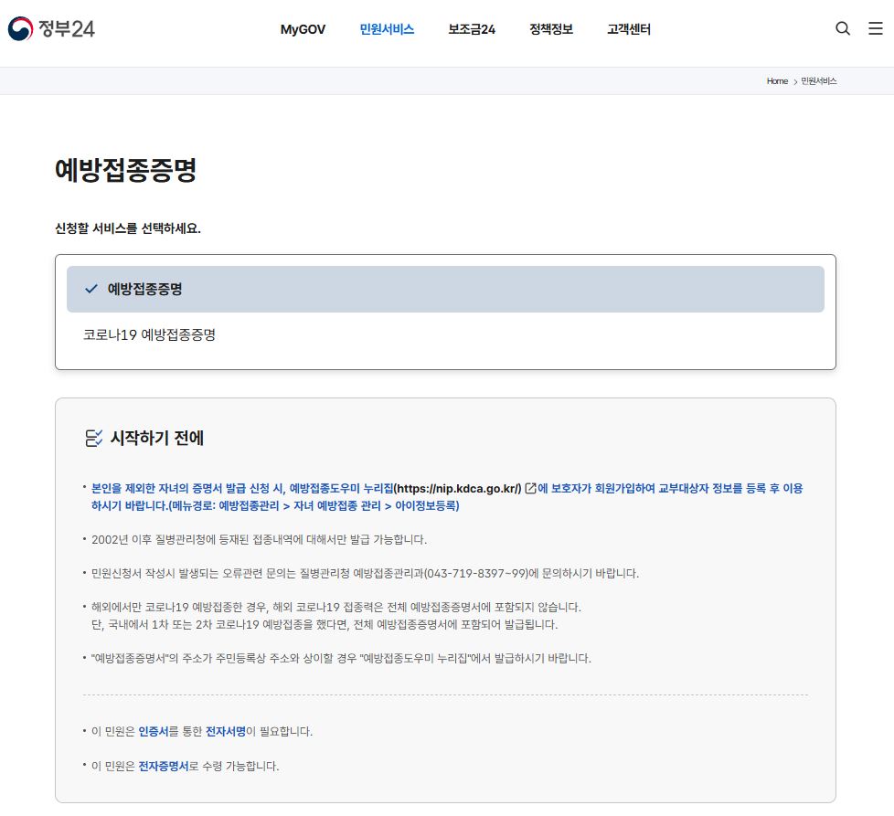보호자 등록이 되어있는 경우 정부 24에서 발급이 더 간편하고