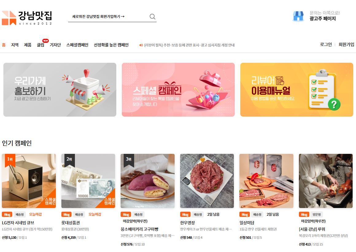 체험단·인플루언서 마케팅은 역시! '강남맛집 체험단' 디지털,신기술,빅데이터로 더욱 정확하고 체계적인 관리,분석시스템.1:1맞춤 컨설팅을 받아보세요!