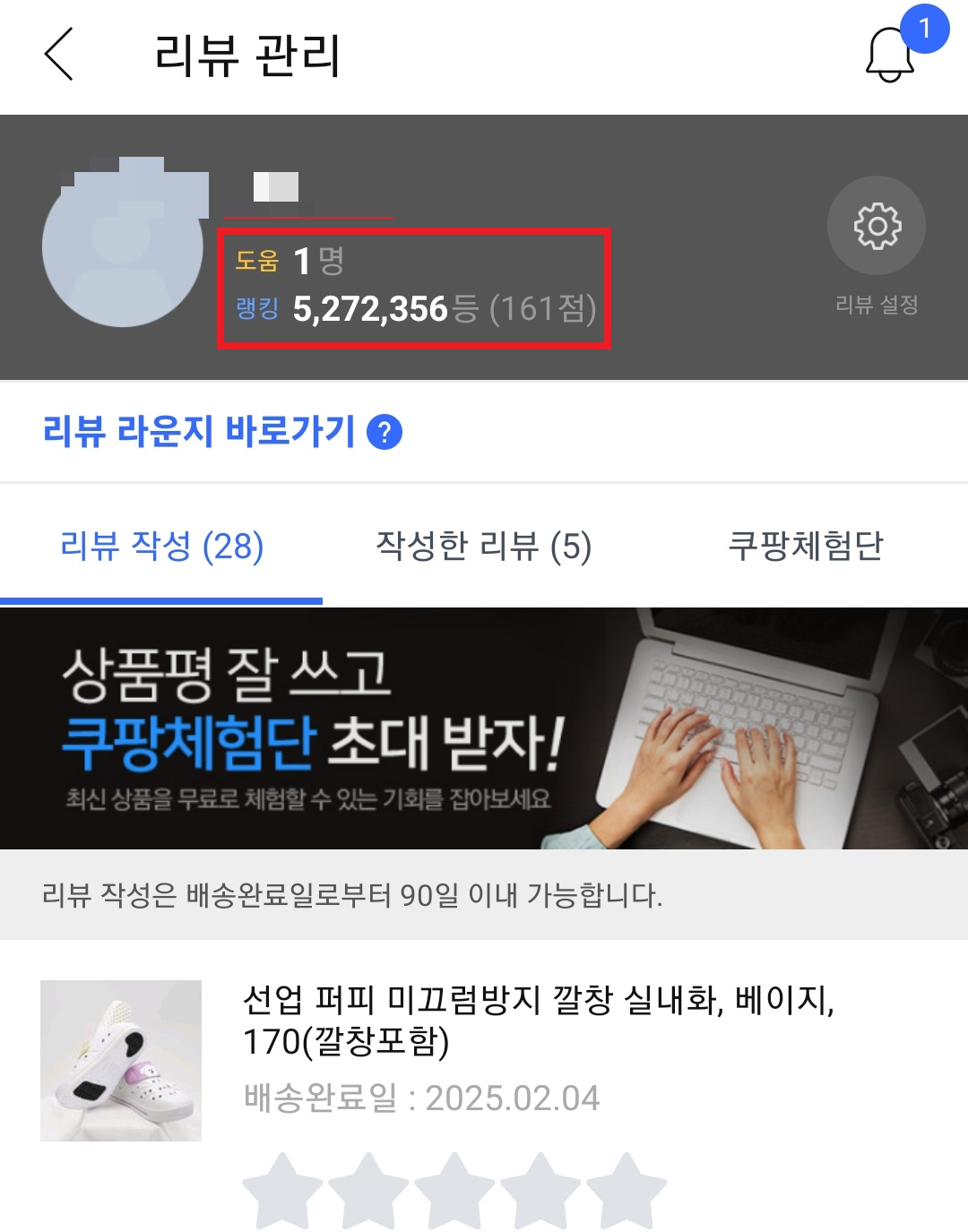 리뷰점수가 7,000점 이상 되어야 쿠팡체험단에 선정될 수 있다는 말이 있는데