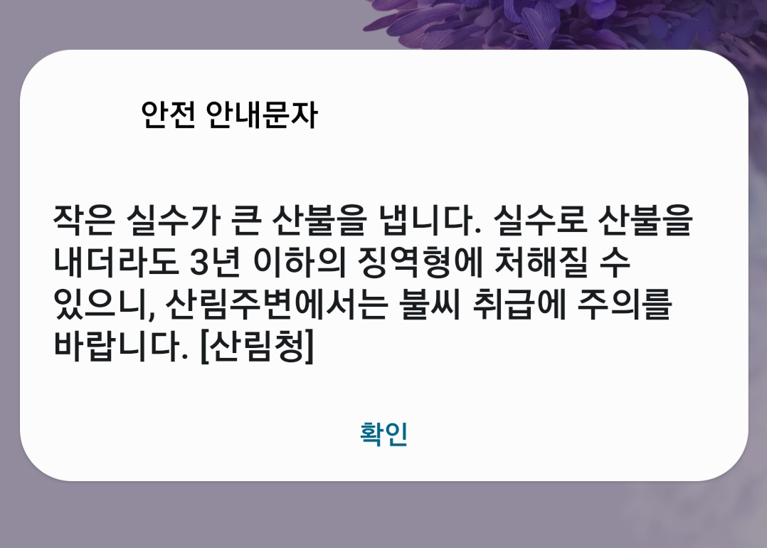 건조한 봄을 맞아 산불소식이 많이 들리고 있다.